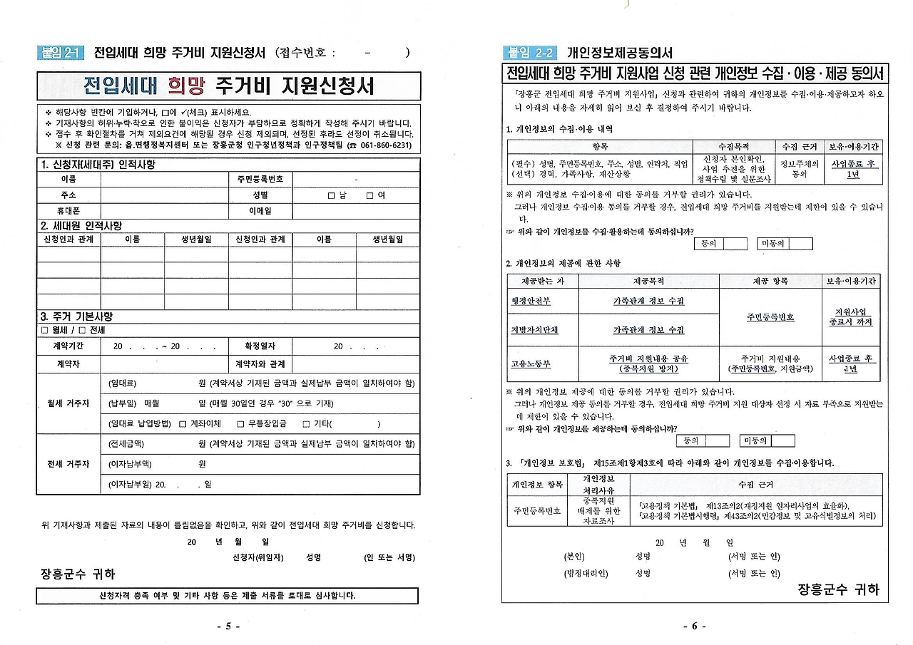 1. 전입세대 희망 주거비 지원서 - 주민센터에 비치