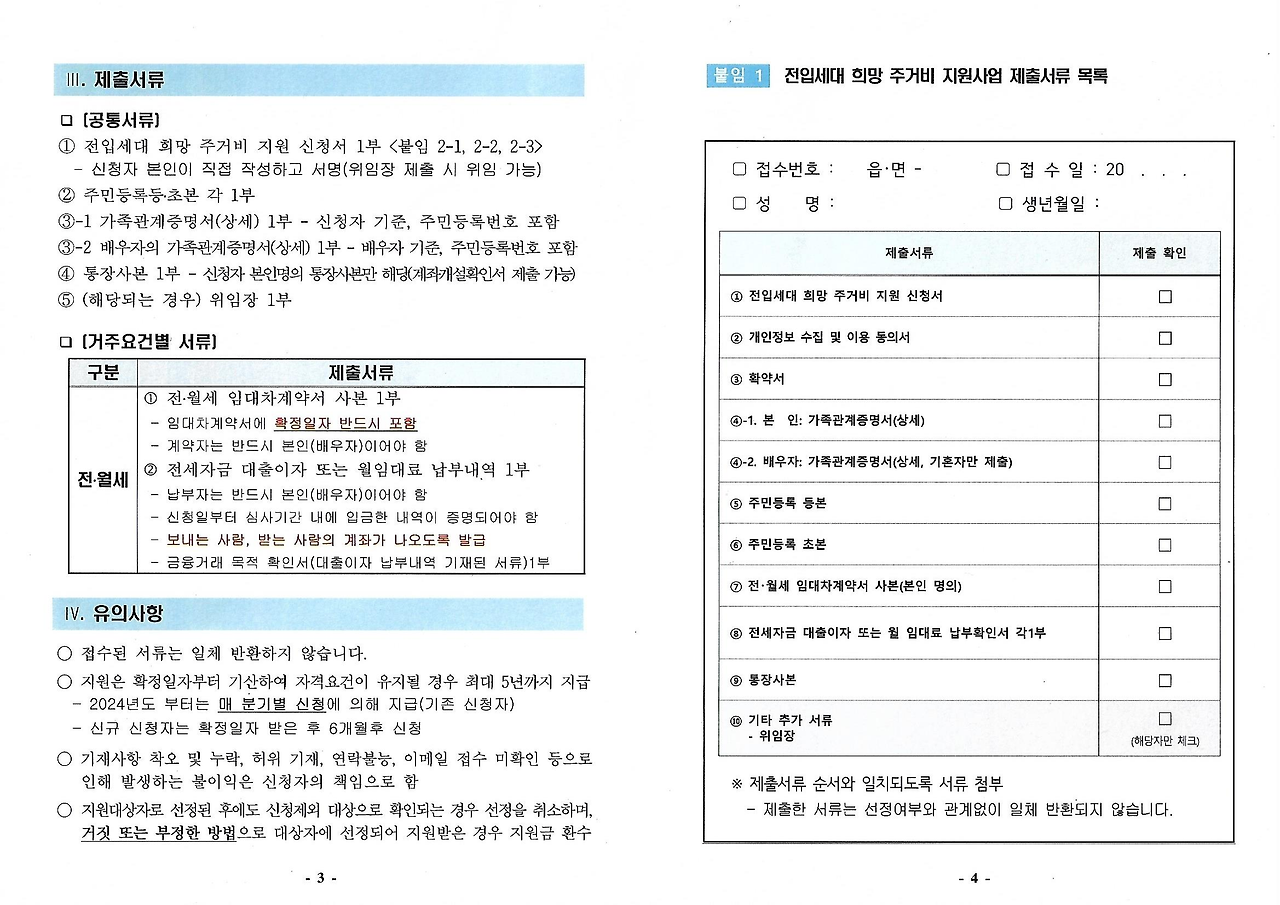 1. 전입세대 희망 주거비 지원서 - 주민센터에 비치